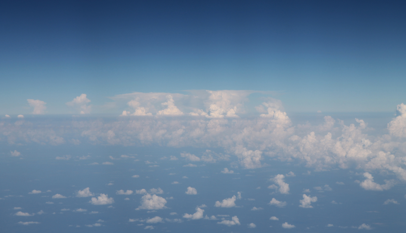 Le commandant de bord a bien prévenu après le décollage de Madrid qu’il y aurait de fortes turbulences et autres orages, ça m’a rappelé la conversation de la veille avec Delphine et Gilles à ce propos. Borf, j’ai trouvé ça plutôt rigolo. Comme nous étions au dessus des nuages je n’ai pas pu me rendre compte des orages, la lumière était tellement éblouissante.