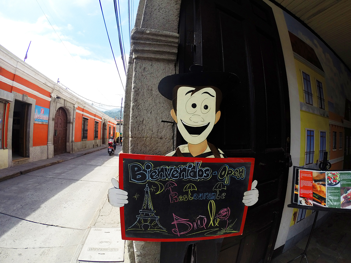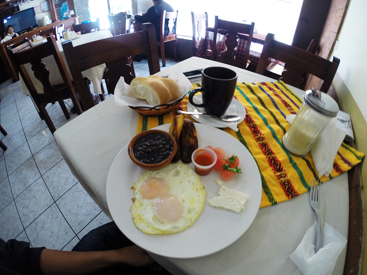 Allez hop je me motive pour subir la colline d’en face, mais d’abord il me faut des chaussures appropriées qui me seront bien utiles pour subir tous les volcans du coin. Du coup je file me au mercado me trouver des chaussures de second pied. J’en profite pour m’acheter de quoi pique-niquer demain au Chikabal. Je bouffe un coup dans un comedor et le ciel s’assombrit déjà et il va pleuvoir, tant pis pour la colline.