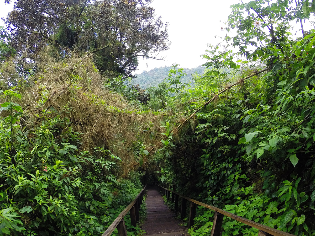 Nous partons tôt, 6h30, l’aube est déjà passée on dirait. Petit trajet en bus pour arriver au pied (je ne vois pas pourquoi je mettrais « pied » au pluriel) du volcan. Environ deux heures de marche, montée, descente, montée, plat jusqu’au mirador puis descente.