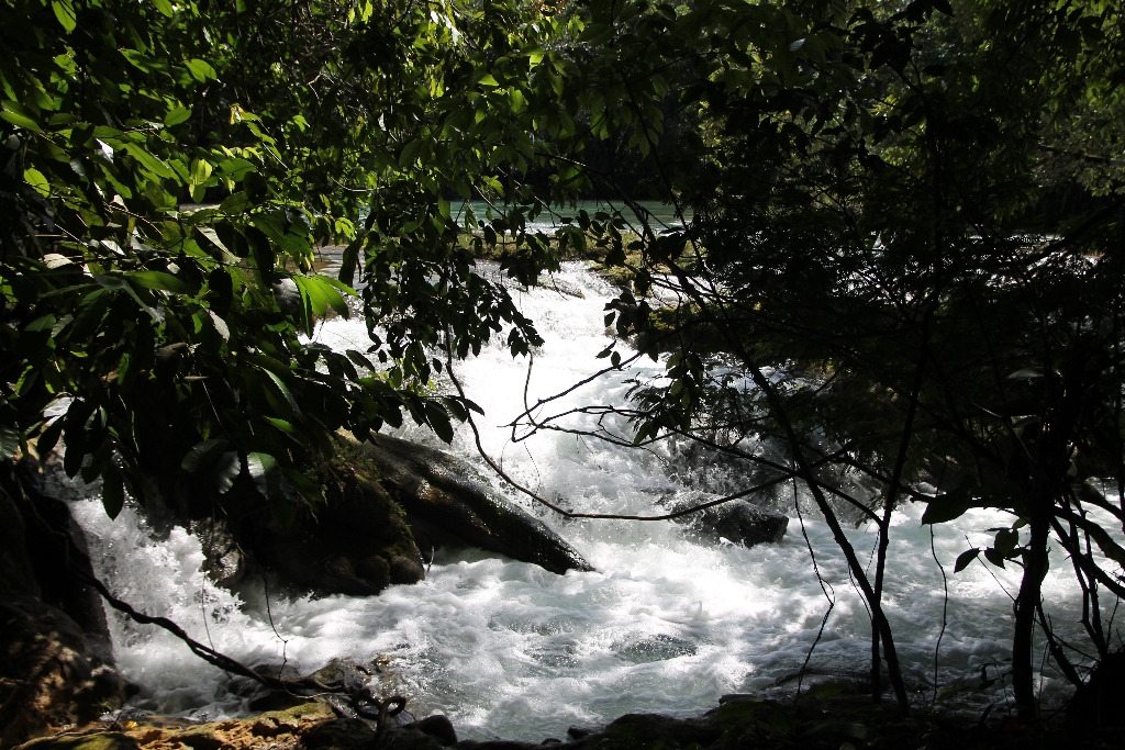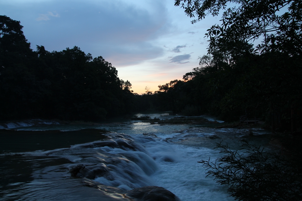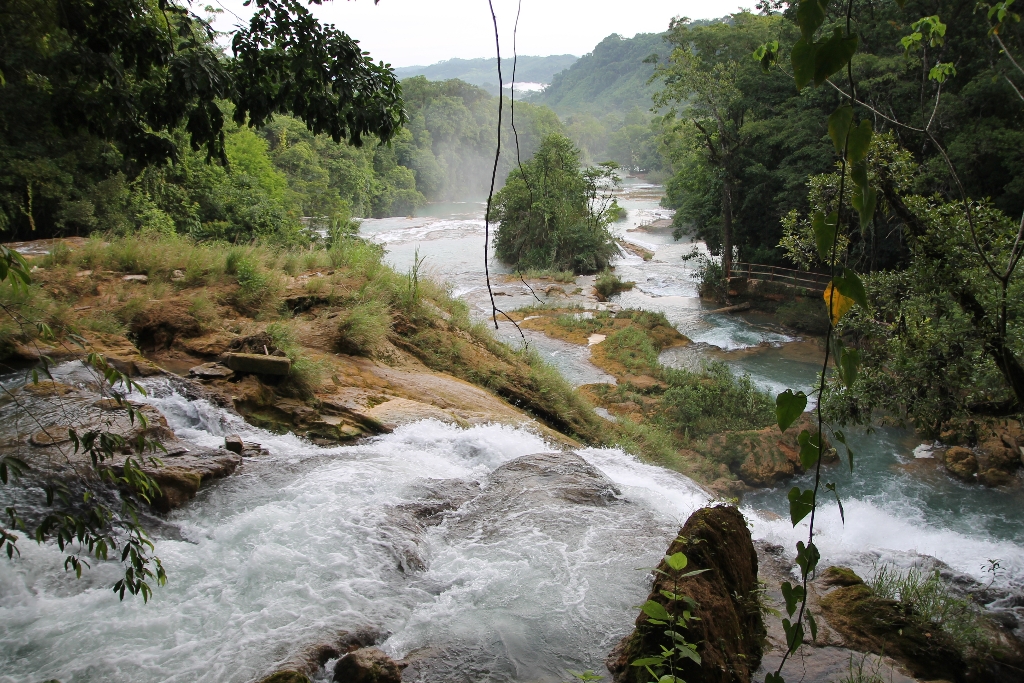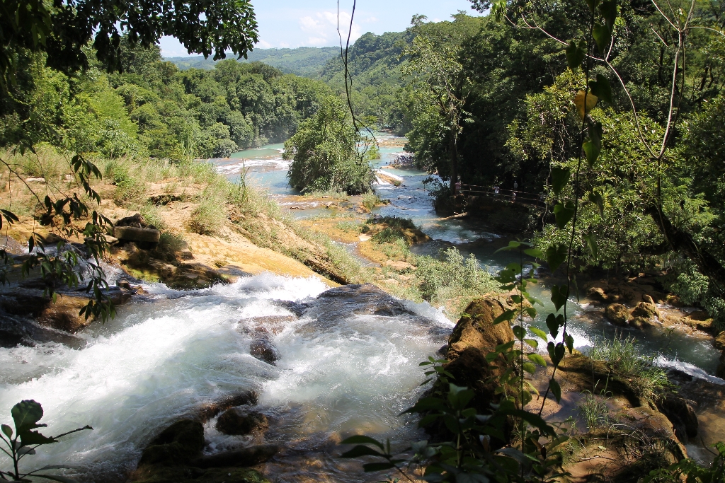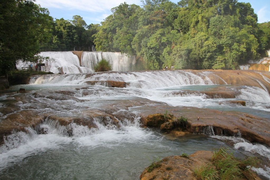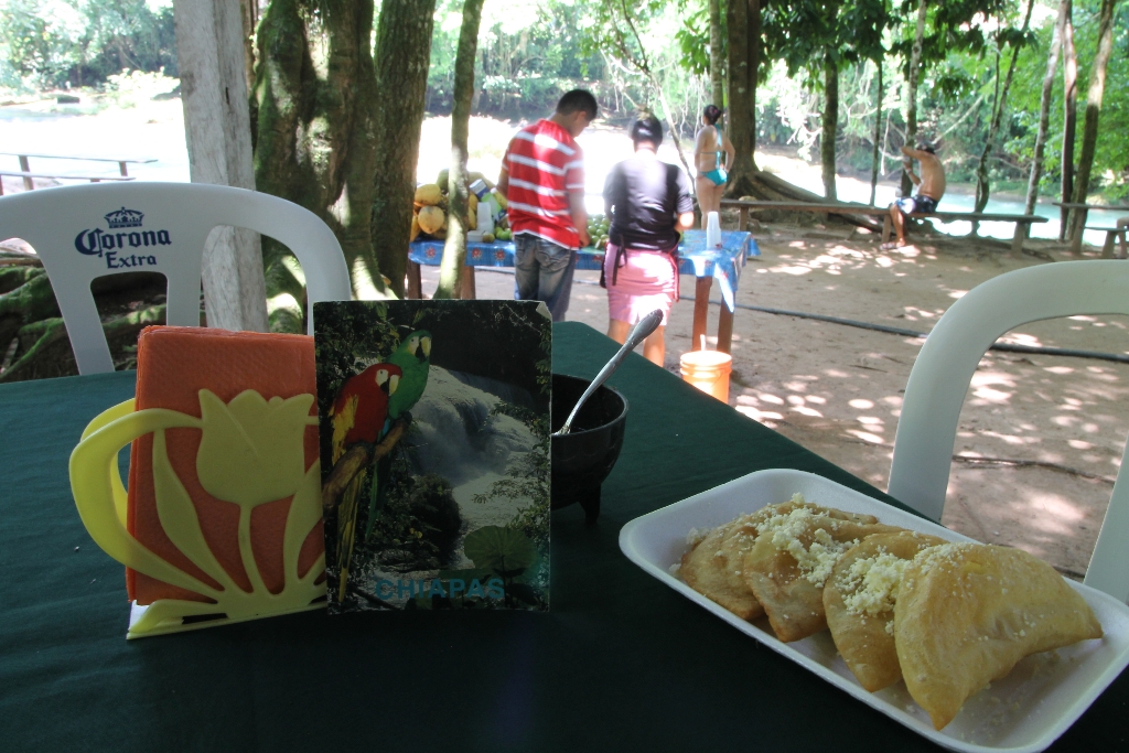 Les mecs des collectivos (combis) hurlent « ¡ Ocosingo, Ocosingo !« , je vois écrit sur le combi (entre autres) : « Misol-Ha, Agua Azul, … » (qui sont des cascades). En scrutant ma carte je me décide pour Agua Azul et me dépêche de payer la bouffe pour ne pas avoir a attendre le combi suivant.