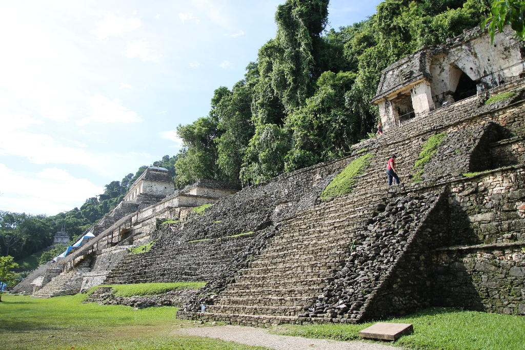 Je retourne a Ocosingo pour y prendre un bus ADO pour Palenque, puis un mec m’avait conseillé un endroit pas cher pour dormir près des ruines, le taxi m’y emmène pour pas cher… déjà sur la route je déchante un peu, je m’y attendais un peu mais pas tant : on sent bien qu’on est sur un des sites les plus visités du Mexique, j’ai peur que ça me fasse le même effet que Chichen Itzá (lumieres qui clignotent pour restaurants, hôtels, …). Puis une fois arrivés a « Pan’chan », je me rends compte que mes doutes étaient fondés : ambiance camping avec un groupe qui reprend des morceaux latinos/cubains. La cabaña est chère pour son état et celui des sanitaires (je n’ai pas trop osé y mettre les pieds). Boué ça sent pas bon cette histoire, je ne paie que pour une nuit finalement, j’avais initialement prévu d’en passer deux mais vraiment pas envie…on verra demain…