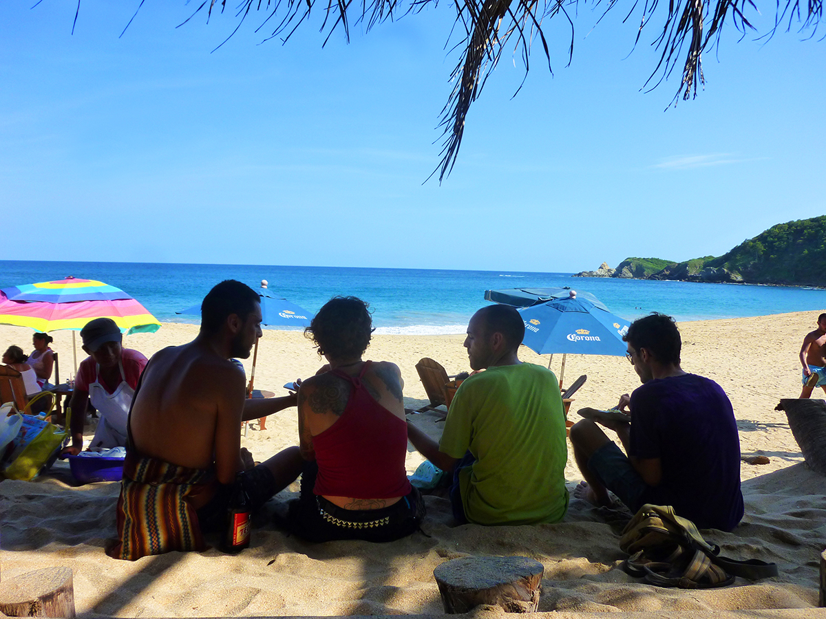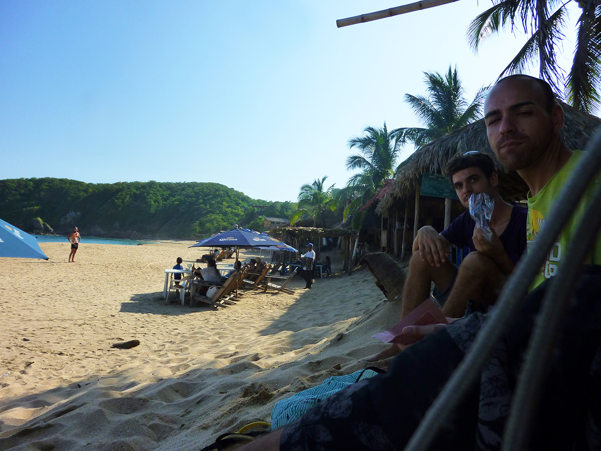 Finalement les copains passeront me prendre en bagnole car Berna raccompagne sa mère et sa soeur à l’aéroport de Puerto Escondido, ce qui me fait poireauter quelques heures avant de les retrouver.